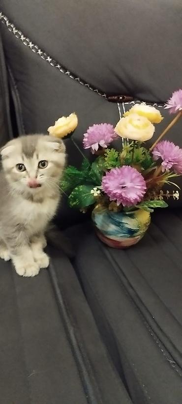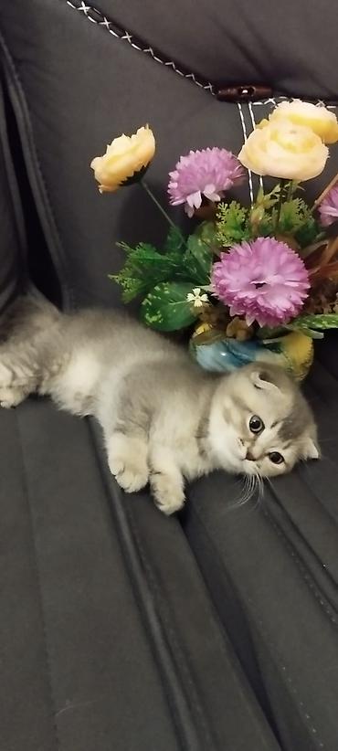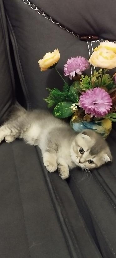 Şotland balası 1 ay 10 günlükdür. saf qan cins pişiklərdir. Ata və ana şotlanddır. - Rəng: gümüş-boz (silver tabby tonlarında) - Qulaqlar: tipik qıvrım, başa yaxın - Gözlər: iri, yumru - Tük quru...