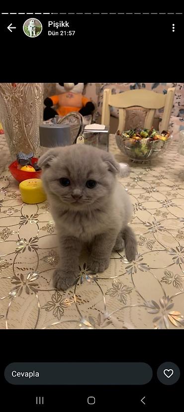 Cins: Şotland qıvrım (Scottish Fold) balası – qızıl rəngli, uzun tüklü tip Rəng: Golden (isti tunc-qızılı ton), açıq krem alt tük Gözlər: Dərin mavi-boz körpə gözləri (rəng böyüdükcə tədricən dəyiş...