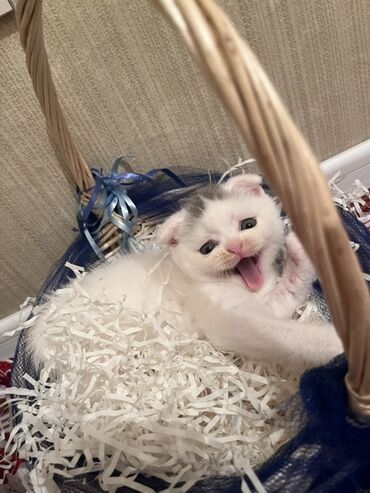 - Cins: Scottish Fold/Scottish Straight qarışığı (şəkillərdə qıvrıq qulaqlı və düz qulaqlı balalar var)