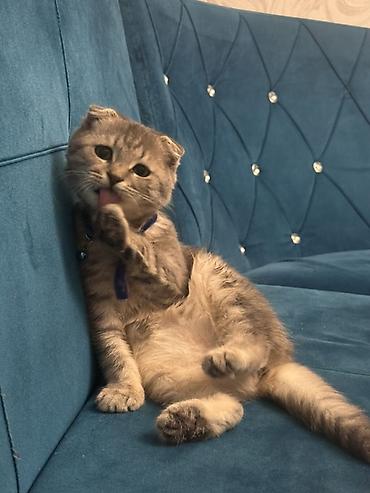 7 aylıq Scottish Fold pişiyi - Cins: Scottish Fold (qatlanmış qulaqlar) - Yaş: 7 ay - Rəng: Boz (solid) - Xüsusiyyətlər: qalın və yumşaq tüklər, yumru baş və iri gözlər, sakit və ev şəraitinə uyğu...