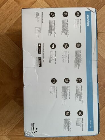 Soundcore Select Pro portativ suya davamlı dinamik. Güclü səs və ekstremal açıq hava şəraitinə davamlılıq üçün nəzərdə tutulmuşdur. Dinamik 16 saata qədər fasiləsiz ifa müddəti təklif edir və BassUp texnologiyası ilə zəngin basları təmin edir. IPX7 suya davamlılıq reytinqi sayəsində su sıçramalarından və suya batırılmadan qorunur. Daxili işıqlandırma effektləri və fərdiləşdirilə bilən EQ ilə istifadəçilər öz dinləmə təcrübələrini tənzimləyə bilərlər. Dinamik Bluetooth bağlantısını dəstəkləyir və Soundcore tətbiqi vasitəsilə idarə oluna bilər. Məhsul qara rəngdədir.