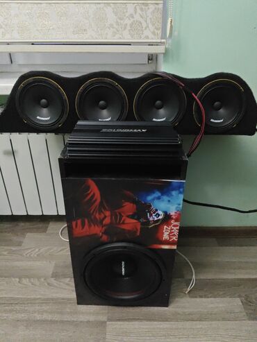 - Gücləndirici: Soundmax SX-2700.4, 12V avtomobil gücləndiricisi (etiket üzərində model SX-2700.4). Alüminium korpus, çoxkanallı çıxışlar, sərinlənmə üçün ventilyasiya yarıqları.