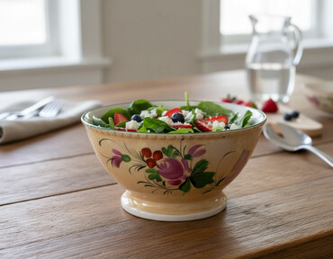 Üstü əl işiylə çəkilmiş floral (gül və yarpaq) dekor, çoxrəngli boyalar