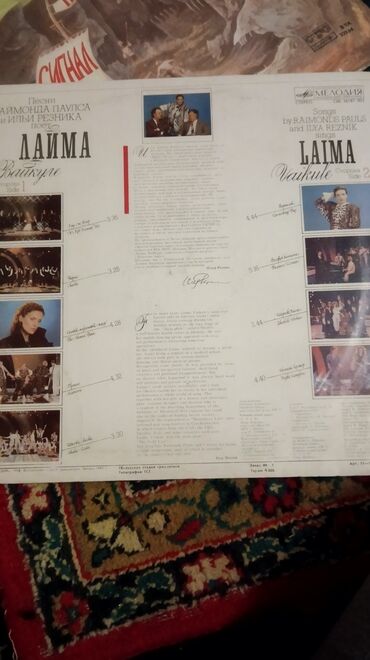 - Laima Vaikule – “Песни Раймонда Паулса и Ильи Резника поёт Лайма Вайкуле”; arxa qapaqda mahnıların siyahısı, foto kadrlar və mətn, 1988.