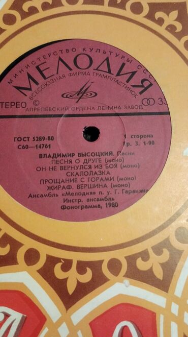 - Vladimir Vısotski – “Песня о друге” və digər mahnılar; etiketdə GOST 5289-80, kataloq nömrəsi C60—14761, mono qeyd, 1980.