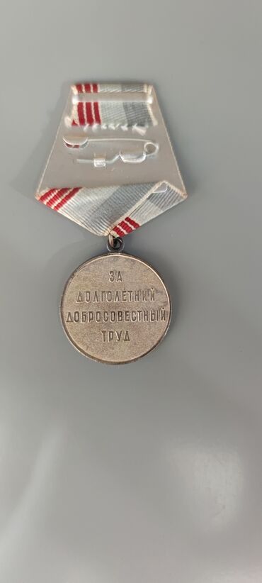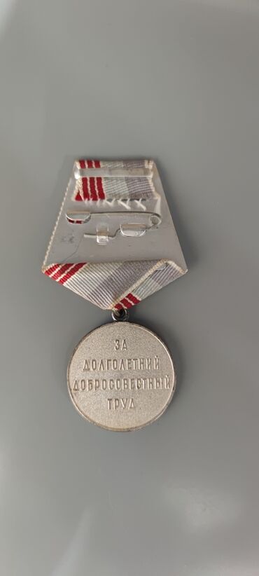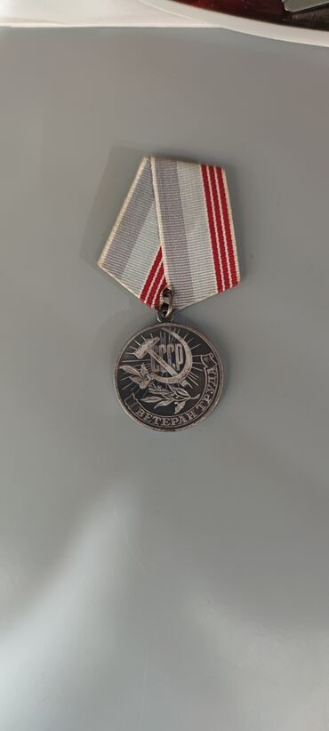 - “СССР — Ветеран труда” gümüşü tonlu medal. Ön üzdə oraql-çəkic, “СССР” yazısı və dəfnə budaqları. Lent: boz fond üzərində qırmızı-çəhrayı nazik zolaqlar.