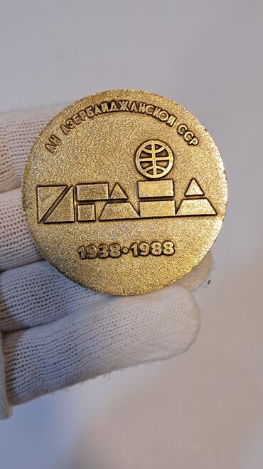 - Üzərindəki yazılar rus dilindədir; mövzular: SSRİ gənclik idman oyunları (1989), Azərbaycan SSR Elmlər Akademiyasının 50 illiyi (1938–1988) və 60 illik yubiley