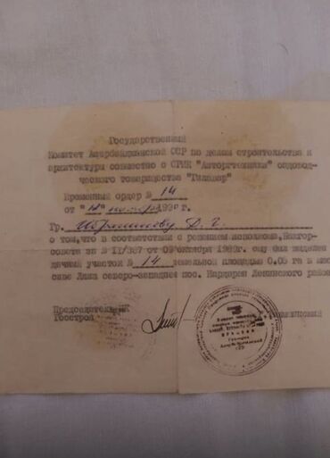 SSSR vaxtlarından qalan köhnə kağızdır, o vaxtlar Bağlar idarəsi verirdi veteranlara və sairə vətəndaşlara.