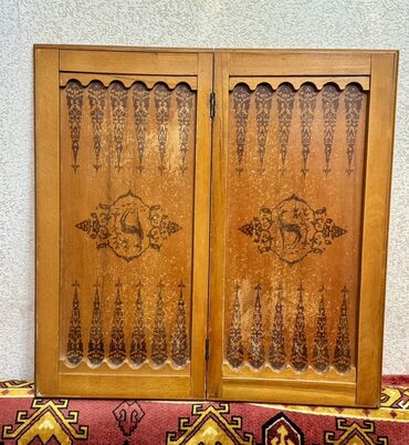 - Dekor: geyik motivləri, klassik bitki ornamentləri, 50 rəqəmli və sovet simvolikası olan bədii işləmələr