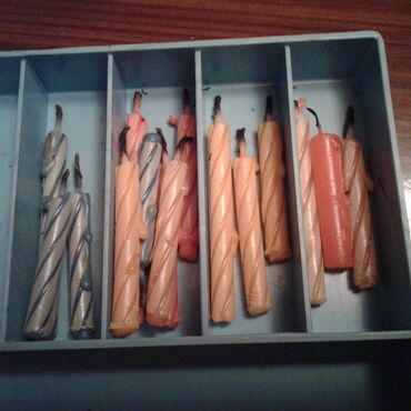 Sovet istehsalı işlənmiş şamlar dəsti satılır. 15 ədəd şam və 20 ədəd altlıqları var. 1 dəfə istifadə edilib.