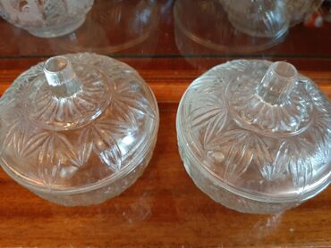 Bohema üslubunda şüşə/kristal qab-qacaq dəsti - Kase: dairəvi naxışlı şüşə-kristal kasalar. Ölçü: orta ölçü, salat və ya şirniyyat üçün uyğundur. Qiymət: 1 ədəd – 30 AZN (şəkildə 2 ədəd göstərilib...