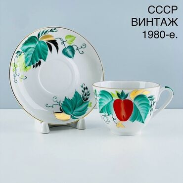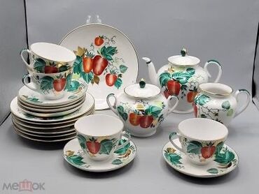 Porcelain çay-servis dəsti: - İstehsalçı nişanı: ЛФЗ (Leningrad Porcelain Factory), - Material: yüksək keyfiyyətli farfor - Dizayn: ağ əsas üzərində yaşıl-sarı-qəhvəyi yarpaq və budaq ornamentləri...