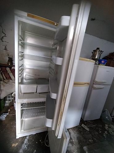 - 2 qapılı ağ soyuducu (şəkil 3–4): ayrı dondurucu və soyuducu bölməsi, içərisi şüşə rəflər, tərəvəz üçün çekmecələr, qapı rəfləri ilə. Qiymət: 150 AZN (şəkildə göstərilib).