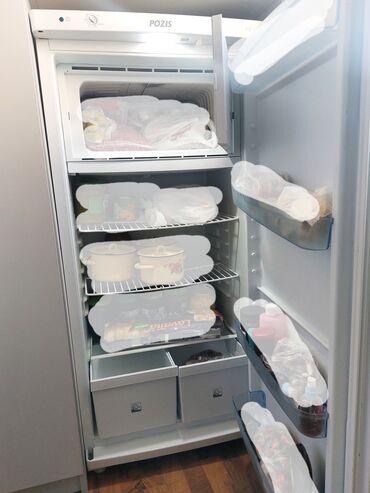 Pozis iki kameralı soyuducu - Ölçülər: hündürlük 1.70 m, eni 60 sm - Rəng: gümüşü - Üst kamera: dondurucu, metal rəfli - Alt kamera: geniş soyuducu bölmə, bir neçə şüşə rəf, aşağıda tərəvəz-mevə ü...