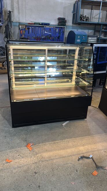 Tort üçün vitrin şüşəli soyuducu Şirniyyat soyuducu 2 polkalıdır yernən bir yerdə 3. Polkaların yeri dəyişilir, icərisi isiqlıdır yeni məhsuldur soyutma dərəcəsi 0 kimi düşür, 0 fazadır, dərcəc...