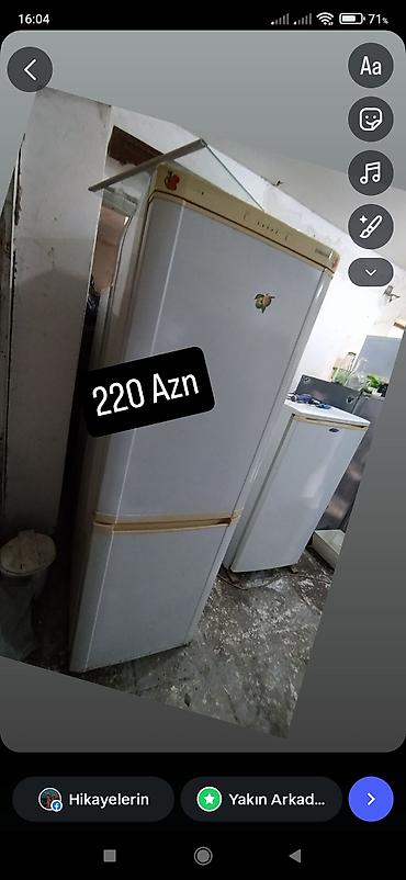 ‼️‼️Ünvan: Binə kəndi‼️ Çatdırma əlavə ödənişlə. 15 gün zəmanət verilir. Soyuducum çoxdur. Canlı zəng edib baxa bilərsiniz. İki qapılı soyuducu - Üst bölmə: dondurucu - Alt bölmə: əsas soyutma kam...