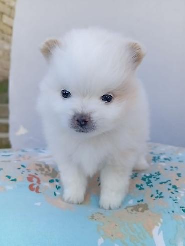 Məhsul: Pomeranian (Spitz) balası – ağ rəng Xüsusiyyətlər: - Tam ağ, sıx və yumşaq ikiqat tük örtüyü; kiçik, kompakt bədən quruluşu - Qara, parlaq gözlər və qısa, qurdal qulaqcıqlar; kiçik düymə b...