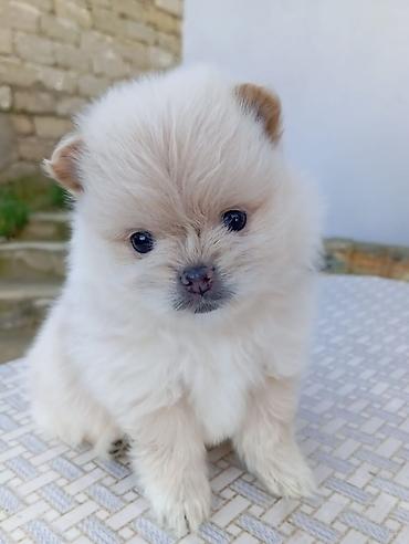 Cins: Pomeranian (Spitz) Rəng: Krem/ağ tonları Yaş qrupu: balalar Xüsusiyyətlər: - Kompakt bədən quruluşu, çox sıx və yumşaq ikiqat yunu - Qısa burun, kiçik qulaqlar, “oyuncaq” tipli ifadəli üz - A...
