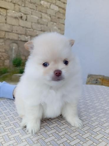Pomeranian (Spitz) balaları – ağ tüklü, mini tip. - Xarakter: mehriban, oyunbaz, insanlara tez alışan, ev şəraitinə uyğun. - Görünüş: sıx və yumuşaq ikiqat ağ yun örtüyü, qısa burun, kiçik qulaql...