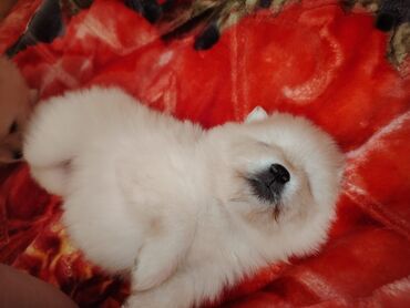 Pomeranian (Spitz) balası - Rəng: qar kimi ağ - Yunu: çox sıx, ipək kimi yumşaq, qalın alt tüklü - Burnu: qara, kiçik və yumru - Qulaqlar: balaca, dik formaya keçəcək - Gözlər: tünd, ifadəli - Bəd...