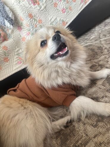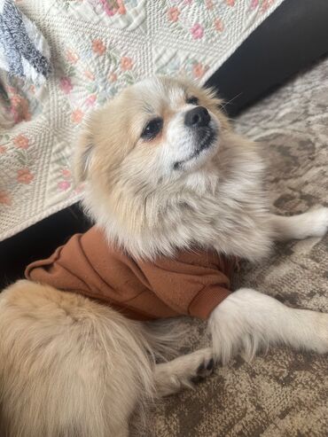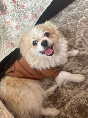 Cins: Pomeranian (Spitz) 55 günlük baladı. Tualet tərbiyəsi var. hazırda 500qr çəkidədi, maksimum 2.5-3 kq qədər çəkisi artır. Çox ağıllı mehriban tək qalmağı bacaran itdi ( tək qalanda səs küy sal...