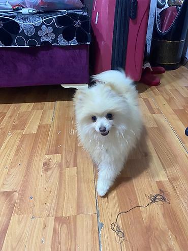 Pomeranian (Spitz) balası – yığcam, tüklü və çox şirin. Xüsusiyyətlər: - Rəng: krem-ağ tonlarda, sıx və yumşaq paltarlı - Kiçik ölçülü, qısa ağızlıq və yuvarlaq baş quruluşu - Canlı, oynaq və ev ş...