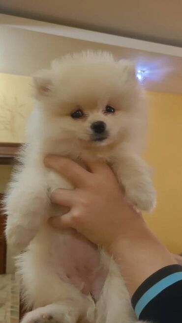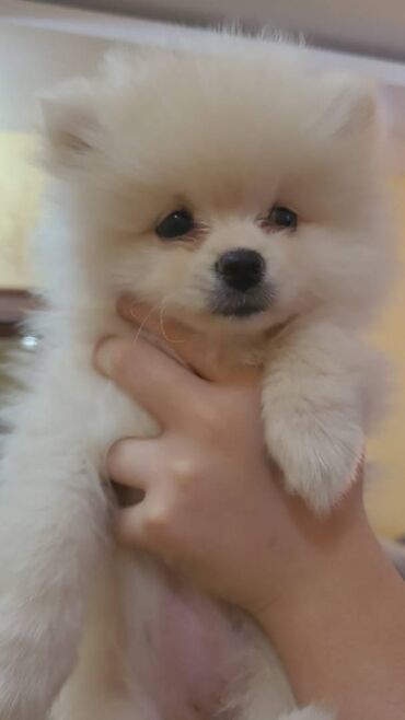 Satılır: Saf dişi ağ Pomeranian (Şpits) Çox sevilərək və qayğıyla böyüdülmüş, ev şəraitində baxılan saf dişi Pomeranian satılır. Tam sağlam, mehriban və uşaqlarla çox yaxşı yola gedən bir itdir. ...