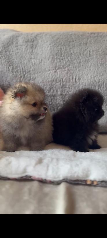 Pomeranian (Şpits) balaları – mini tip Qara bala mikrodu 35gunlukduler digeri krem rengde olacaq( qisa burun mishka shpicdi) Xüsusiyyətlər: - Cins: Pomeranian (Zwergspitz), mini tip - Rənglər: qar...