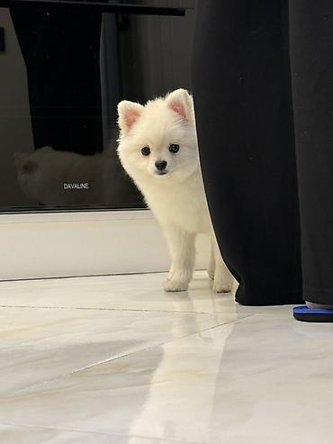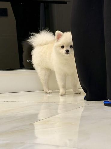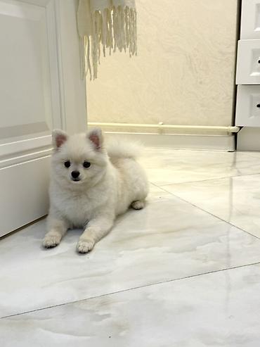 Cins: Pomeranian Spitz (mini) Rəng: qar kimi ağ Yaş qrupu: 1 aylıq Xüsusiyyətlər: - Kompakt bədən quruluşu, yumşaq və sıx tüklü palto - Qara düymə burun və tünd gözlər ilə ifadəli üz - Aktiv, mehr...