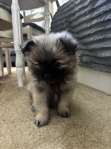 Balaca spitz tayı (Pomeranian tipli) – tüklü, kompakt və çox mehriban. Xüsusiyyətlər: - Rəng: krem-boz üstlük, qara maskalı sifət - Xəz: qalın, yumşaq ikiqat tüklü örtük - Boyut: xırda cins, mənzi...