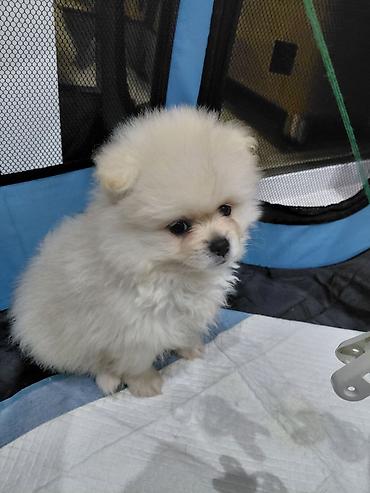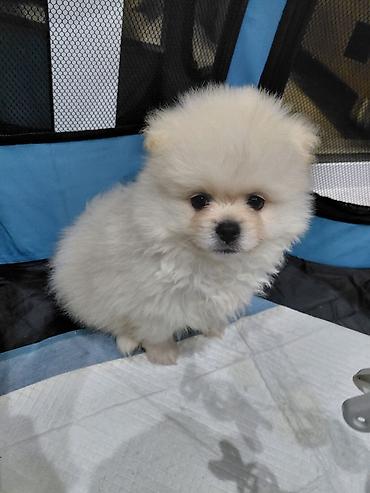 Cins: Pomeranian Spitz (mini) Rəng: qar kimi ağ Yaş qrupu: 1 aylıq Xüsusiyyətlər: - Kompakt bədən quruluşu, yumşaq və sıx tüklü palto - Qara düymə burun və tünd gözlər ilə ifadəli üz - Aktiv, mehr...