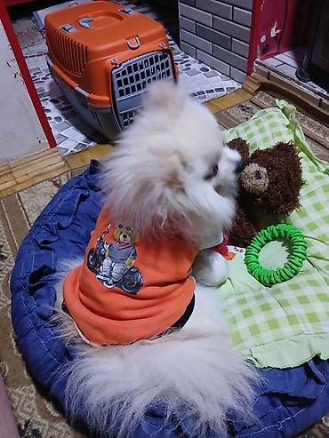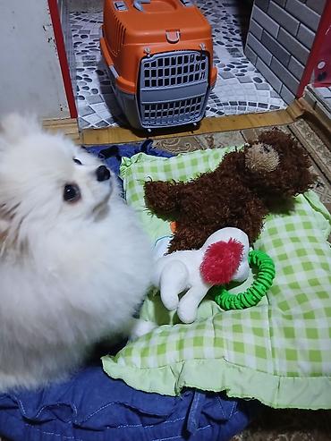 Pomeranian Spitz (ağ krem rəngli), balaca ölçülü, tüklü quyruqlu və kompakt bədən quruluşu ilə. Ev şəraitinə tam uyğun, sakit və mehriban xasiyyətli, uşaq və digər ev heyvanları ilə rahat ünsiyyət qurur. Gündəlik qısa gəzinti və oyunlarla enerjisini çıxarır, habelə interaktiv oyuncaqlarla məşğul olmağı sevir. Uzun və sıx örtüyü müntəzəm daraqla qulluq tələb edir; tökülməni azaltmaq və parıltını qorumaq üçün həftədə bir neçə dəfə daramaq məsləhətdir. Kiçik sahəli mənzillərdə belə rahat yaşayır, ev təlimlərinə tez adaptasiya olur. Sərin iqlimi sevir, isti havada kölgə və sərin su ilə təmin etmək lazımdır. Şəkillərdə gördüyünüz: