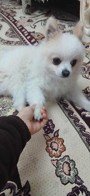 Pomeranian (Spitz) balaları – ağ tüklü, mini tip. - Xarakter: mehriban, oyunbaz, insanlara tez alışan, ev şəraitinə uyğun. - Görünüş: sıx və yumuşaq ikiqat ağ yun örtüyü, qısa burun, kiçik qulaql...