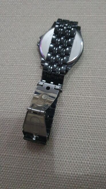 Qara metal qolbaqlı, klassik analoq qol saatı.