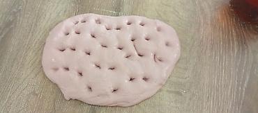 - Tekstur: yumşaq, uzanan və çox elastik; yoğrulanda “pof” səsi verən, hava qabarcığı tutub böyük balon kimi şişən