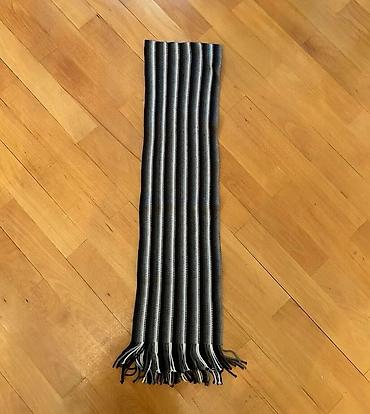 - Zolaqlı klassik şərf: qara/boz/ağ nazik şaquli zolaqlar, saçaqlı uclar, neytral və gündəlik istifadəyə uyğun.