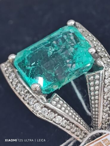 Kişi üzüyü – orijinal dizaynlı, geniş halqalı gümüş 925 prob . Üzərində dərin yaşıl rəngli, iri, çoxbucaqlı kəsimli mərkəzi daş yerləşdirilib; Klassik və İslam motivlərin birləşdiyi, diqqətçəkən və...