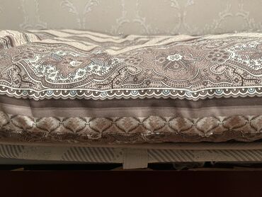 Qızılı naxışlı döşək/yorğan 2 eded 1 ededi 25azn - Material: qalın, yumşaq içlikli döşək; üzlük qızılı rəngdə klassik damask (barokko üslubunda) naxışlı parça. - Rəng və dizayn: isti qızılı ton, ...