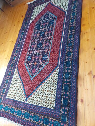 Naxışlı və müxtəlif rəngli bu xalı klassik interyerlər üçün əla seçimdir. Xalının mərkəzi hissəsi tünd göy fonda stilizə edilmiş naxışlarla bəzədilib, kənarları isə qırmızı və ağ rənglərdə geometrik ornamentlərlə haşiyələnib. Xalça otağa rahatlıq və istilik gətirəcək.