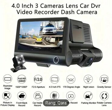 Səs HD video Registrator Maşın üçün video qeydiyyatçı, Ön, Salon, Arxa, 24 saat video çəkiliş imkanı, böyük ölçülü LCD ekran, arxa kamera 6 metr kabel ilə birgə.