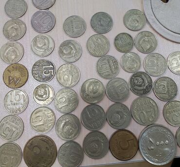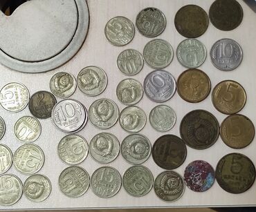 SSR dövrünə aid müxtəlif nominal və illərdən ibarət metal pul kolleksiyası.