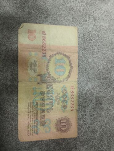Sovet dövrünə aid 10 rubl kağız pul - Növ: SSRİ Dövlət Bankının banknotu - Dəyər: 10 rubl - Seriya və nömrə: МЯ 2037008 - Dizayn xüsusiyyətləri: - Ön tərəfdə nominal “10” rəqəmi, çoxdilli mətn v...