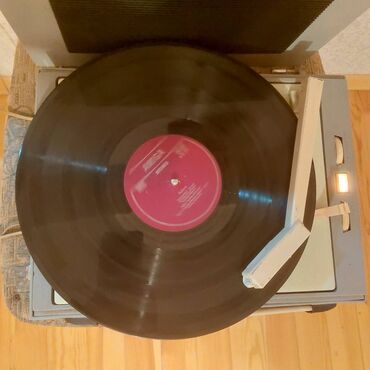 Elektrofon, SSRİ istehsalıdır, üstündə 2 ədəd plastinka da hədiyyə verilir. İşləkdir, səliqəli saxlanılıb. Whatsappda yazsanız videosun ataram