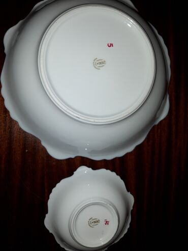Təzə Sovet istehsalı olan farfor boşqablar satılır 6 ədəddir heç istifadə olunmayıb. Servant malıdır. Qəyməti 6 ədədi 20 manat.Ünvan Bakı.ş.