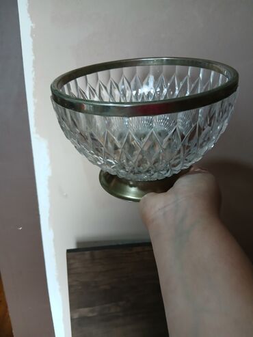 Kəsimli şüşədən hazırlanmış dekorativ qədəh-kasa (standlı) -