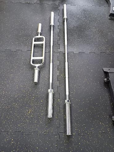 Dəst halında evdə məşq üçün hantel və EZ ştanq barı - 1 ədəd xrom rəngli EZ tipli ştanq barı (bucaqlı/qıvrım forma, yivli uclar, fiksator qozlar üçün) - 2 ədəd hantel sapı (yivli uclar, fiksator q...