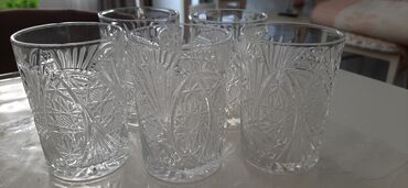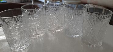 стаканы для компота старых времен 6 шт. хрусталь ,цена 10 ман, хрустальные стаканы 5 шт -10 ман .