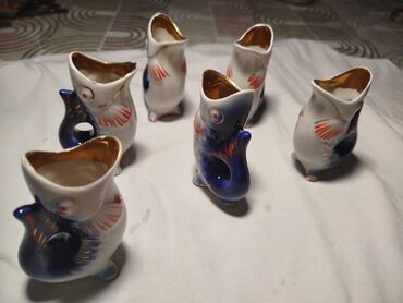 SSRİ dövründə istehsal olunmuş keramik balıq fiqurları dəsti satılır. Ümumi vəziyyəti çox yaxşıdır. Fiqurlardan birində çox kiçik, demək olar ki, görünməyən xırda çat var — ümumi görünüşə təsir etmir.