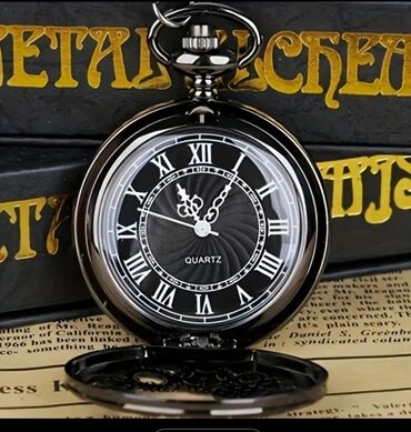 - Siferblat: qara fon, ağ Roma rəqəmləri və dekorativ klassik əqrəblər; “QUARTZ” işarəli
