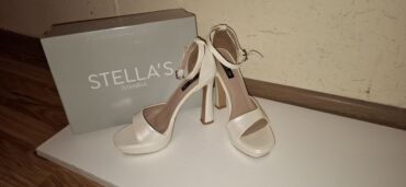 Qadın sandaleti – bej/krem rəngdə platformalı model - Brend: KLADECEK (etiketdə göstərilib) - Ölçü: 39 - Rəng: açıq bej/krem - Model: açıq burunlu, geniş ön kəmərli, topuqdan bağlanan - Bağlama: m...